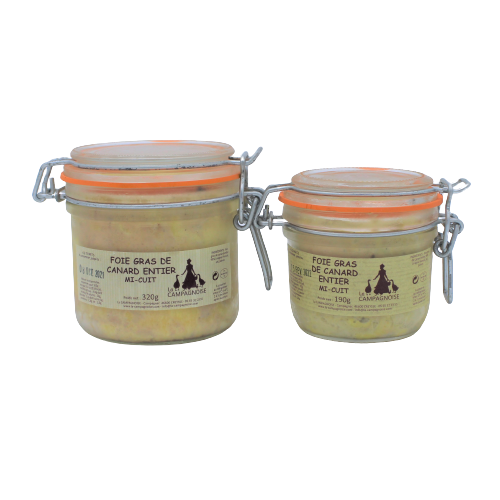 Lot de 1 bocal 320 g et 1 bocal 190g de Foie Gras de Canard Entier « mi-cuit » La CAMPAGNOISE
