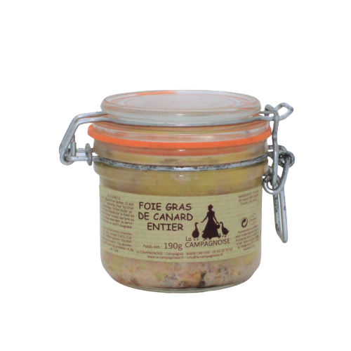 Foie gras de canard entier 98% (origine France), sel, poivre.