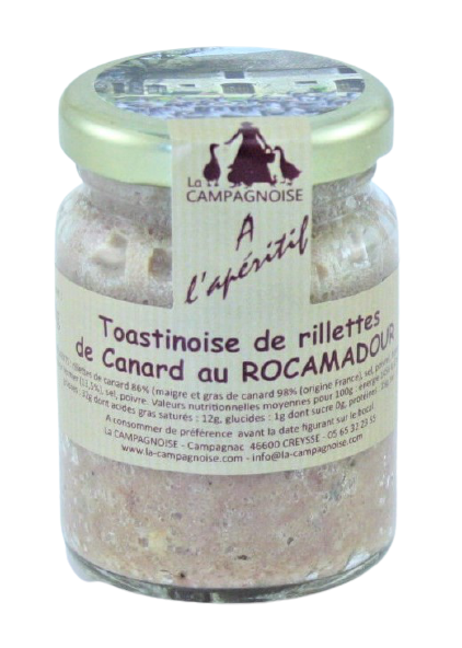 Prête à l’emploi pour un apéritif convivial, la Toastinoise de Rillettes de Canard au Rocamadour Fermier particulièrement goûteuse et savoureuse se sert à température ambiante sur des petits toasts.
